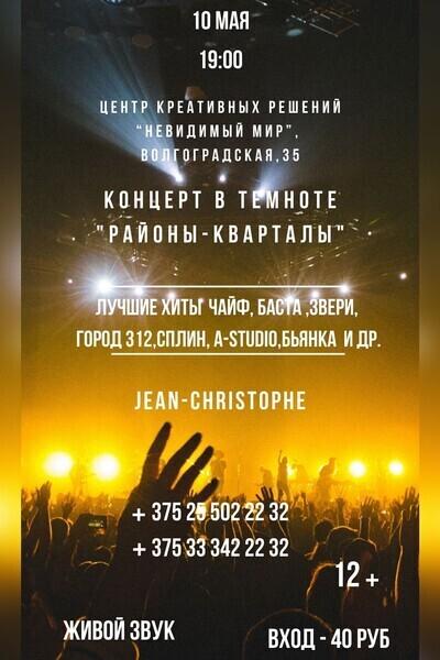 Послушать рок-концерт живой музыки «Районы-кварталы» в полной темноте