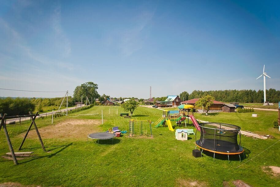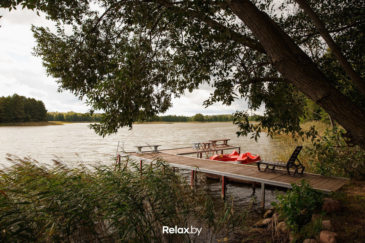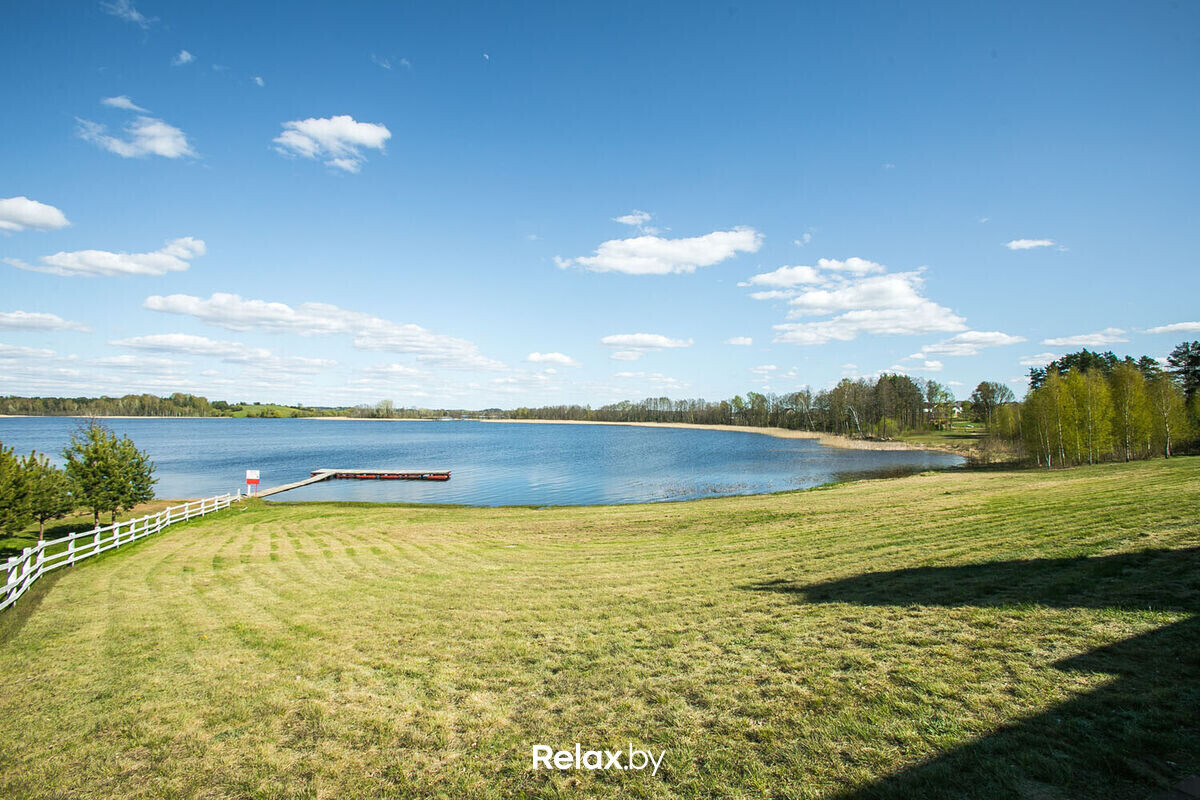 Агроусадьба разместилась на озере Островно в Лепельском районе. На территории — два уютных дома для проживания гостей. В большом есть 3 изолированные спальни на втором этаже, на первом этаже гостиная с камином. Современный интерьер в светлых тонах позволяет полностью расслабиться.