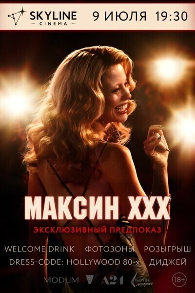 танцы под ретро-ритмы от DJ, погружение в эпоху культуры 80-х. Главное событие — вечер с эксклюзивным предпоказом фильма «Maxxxine».