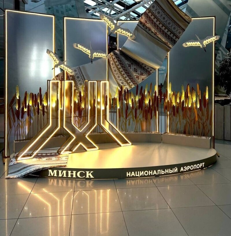 – Логотип аэропорта, как символ главных воздушных ворот Беларуси, окружает отблеск искорок зерен зрелой пшеницы – белорусского золота. В центре, в окружении аистов, расположен рушник, как символ легкого, без трудностей, пути. Атмосферно и душевно. И очень стильно! – презентует новый арт-объект команда аэропорта.