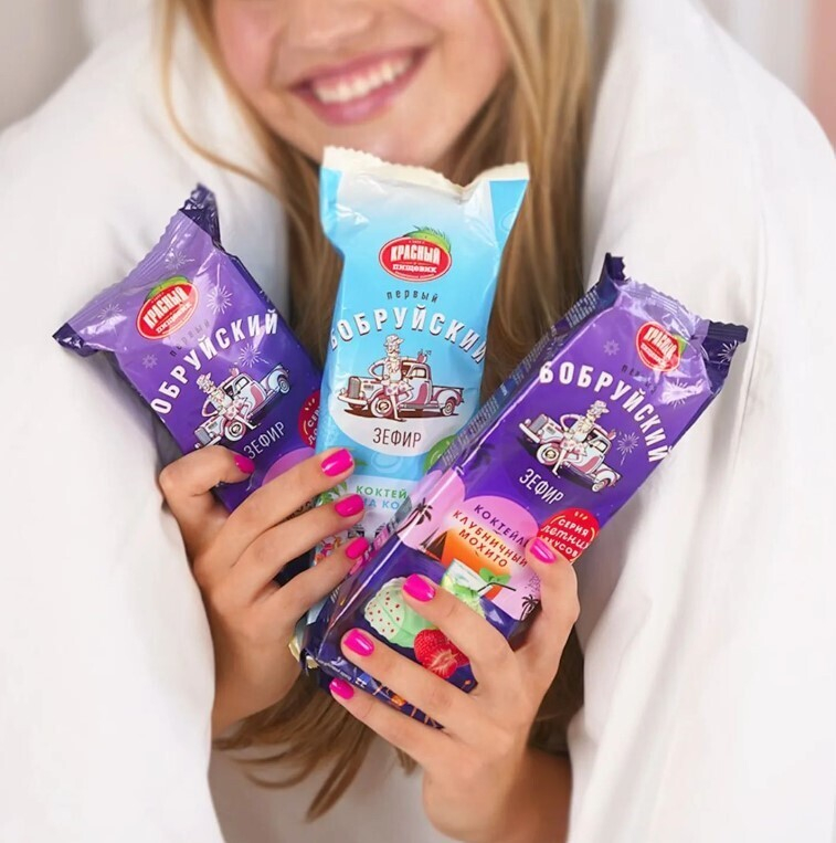 Бобруйский «Красный пищевик» выпустил зефир с двумя нетипичными вкусами коктейлей – мохито и пина колада. Так в составе зефира «Коктейль пина колада» содержится кокосовая стружка, а в «Клубничном мохито» – кусочки засушенной сублимированной клубники.