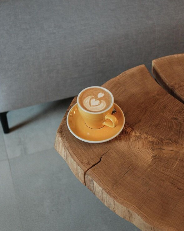 Команда сотрудничает с российским обжарщиком «Сварщица Екатерина». Интерьер получился лаконичным: светлые стены, дерево, зелень, визуально хорошо выделены зоны продажи аксессуаров.