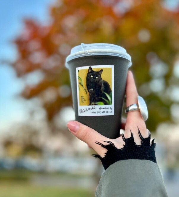 Идея пришла бариста Екатерине, рассказывает Onliner. Каждый, кто купит кофе, может помочь бездомному животному найти дом. Именно для этого на стаканчиках размещают наклейки с фото питомцев, там же написан и контакт волонтеров.