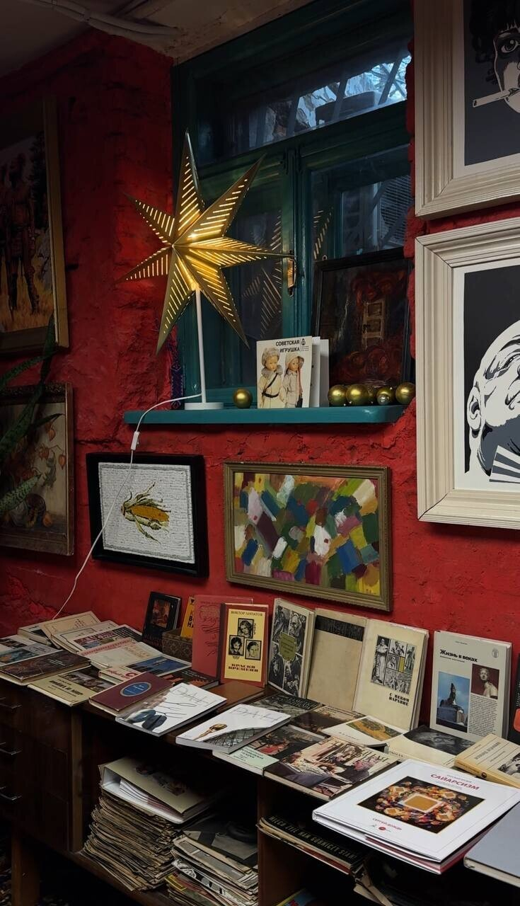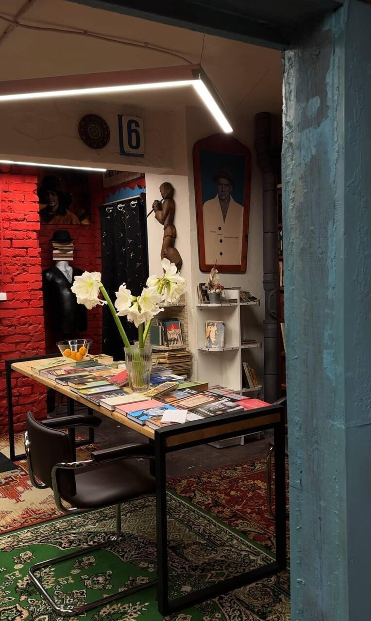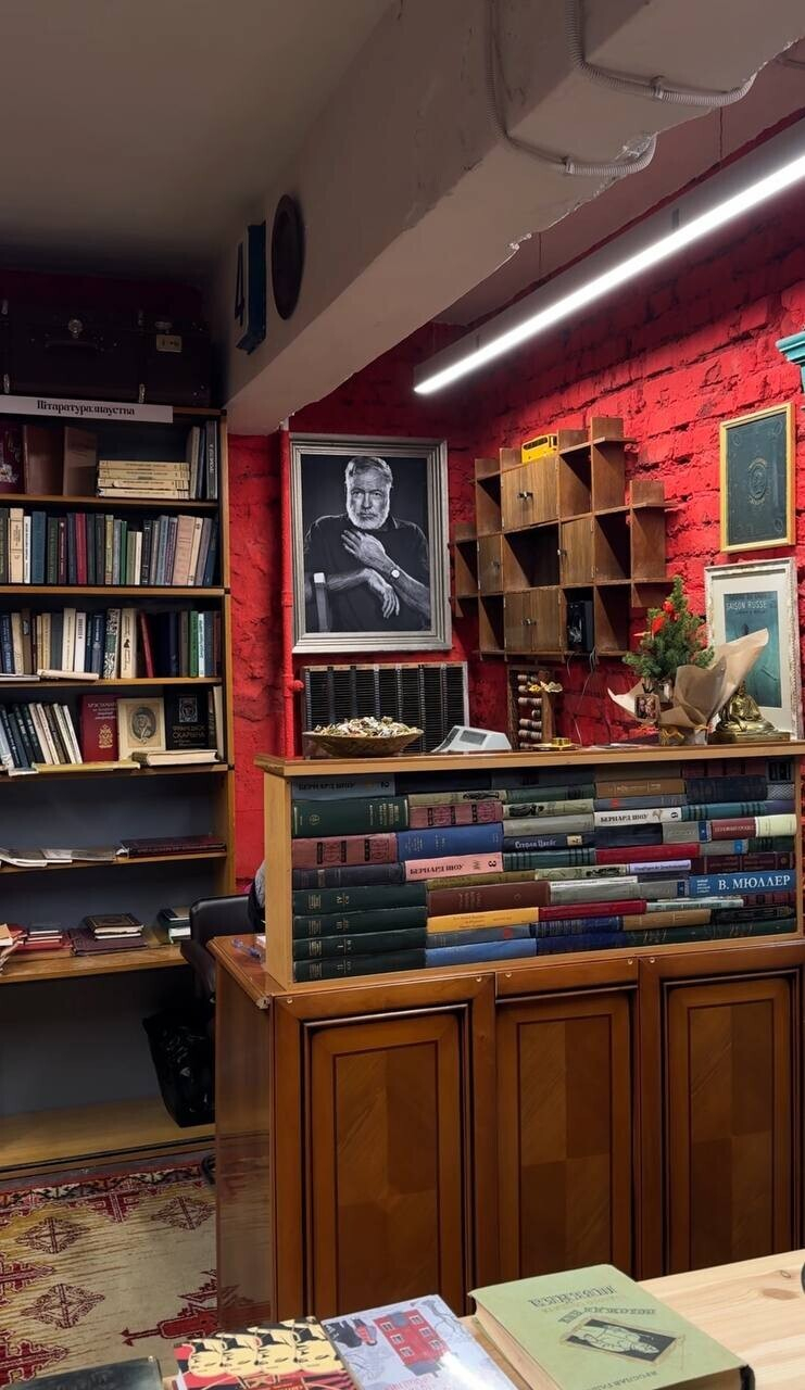 Главные здесь, конечно же, книги: самые разные — от новых до винтажных. Но есть здесь и необычные детали, которые хочется рассматривать. Например, в одном из залов висит дыван их Витебской области, старая лавка и самое интересное — наличники на дверях их настоящей белорусской хаты. Также в букинистическом есть небольшой кинозал, в котором можно остаться на просмотр старого кино после покупки на 10 руб.