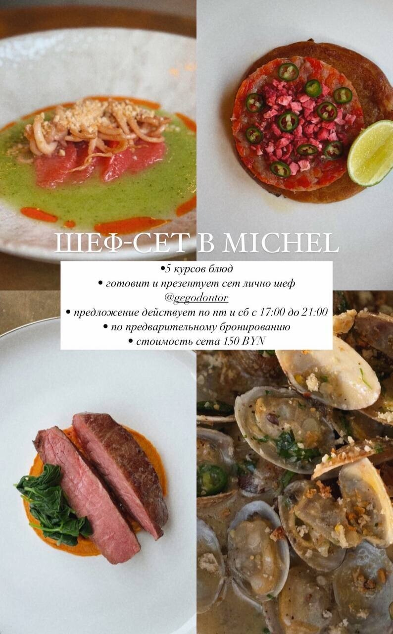 По пятницам и субботам с 17:00 до 21:00 шеф-повар Георгий Кулик будет готовить для вас авторский сет из 5 блюд, каждое из которых направлено на то, чтобы открыть для вас новые вкусовые горизонты.