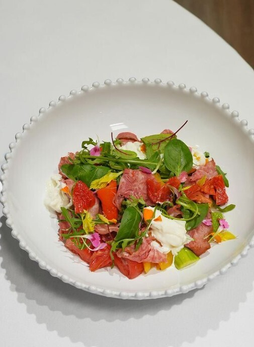 - салат с маринованным ростбифом и домашней страчателлой;
