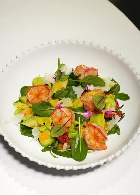 - салат с креветками томатной водой и морковным маслом;