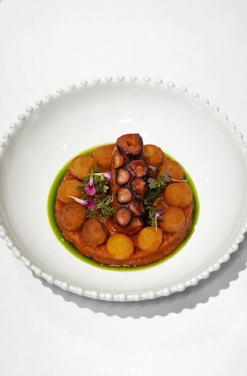 - осьминог с томатной сальсой и соусом кимчи;