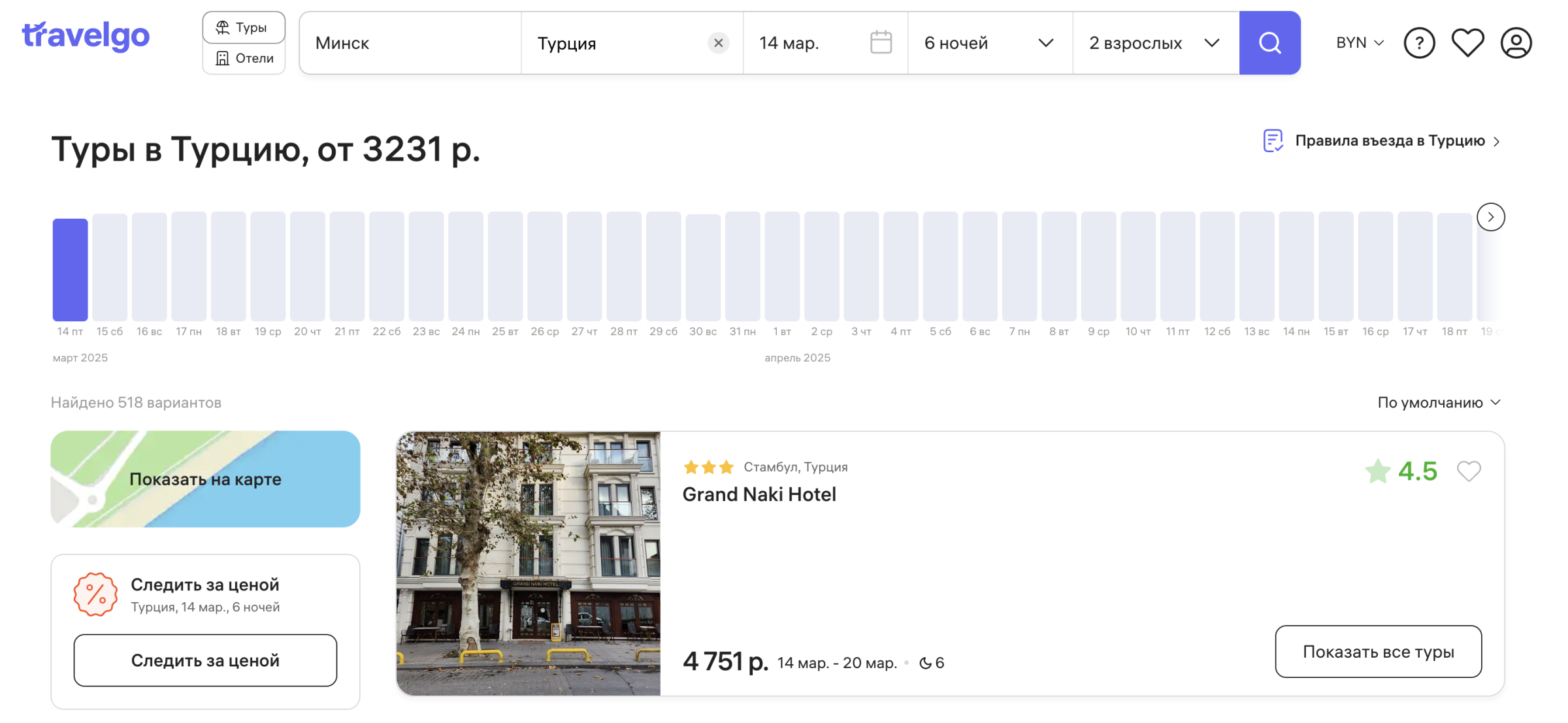 Платформа позволяет гибко настроить параметры поиска туров, включая выбор направления, продолжительности отдыха и бюджета.