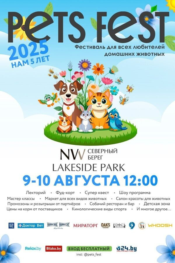 Минск готовится к душевному событию этого лета — 9 и 10 августа на берегу Цнянского водохранилища в Lakeside Park состоится юбилейный, пятый по счету Pets Fest. Это два дня ярких эмоций, полезных знаний, игр и настоящей любви к питомцам.