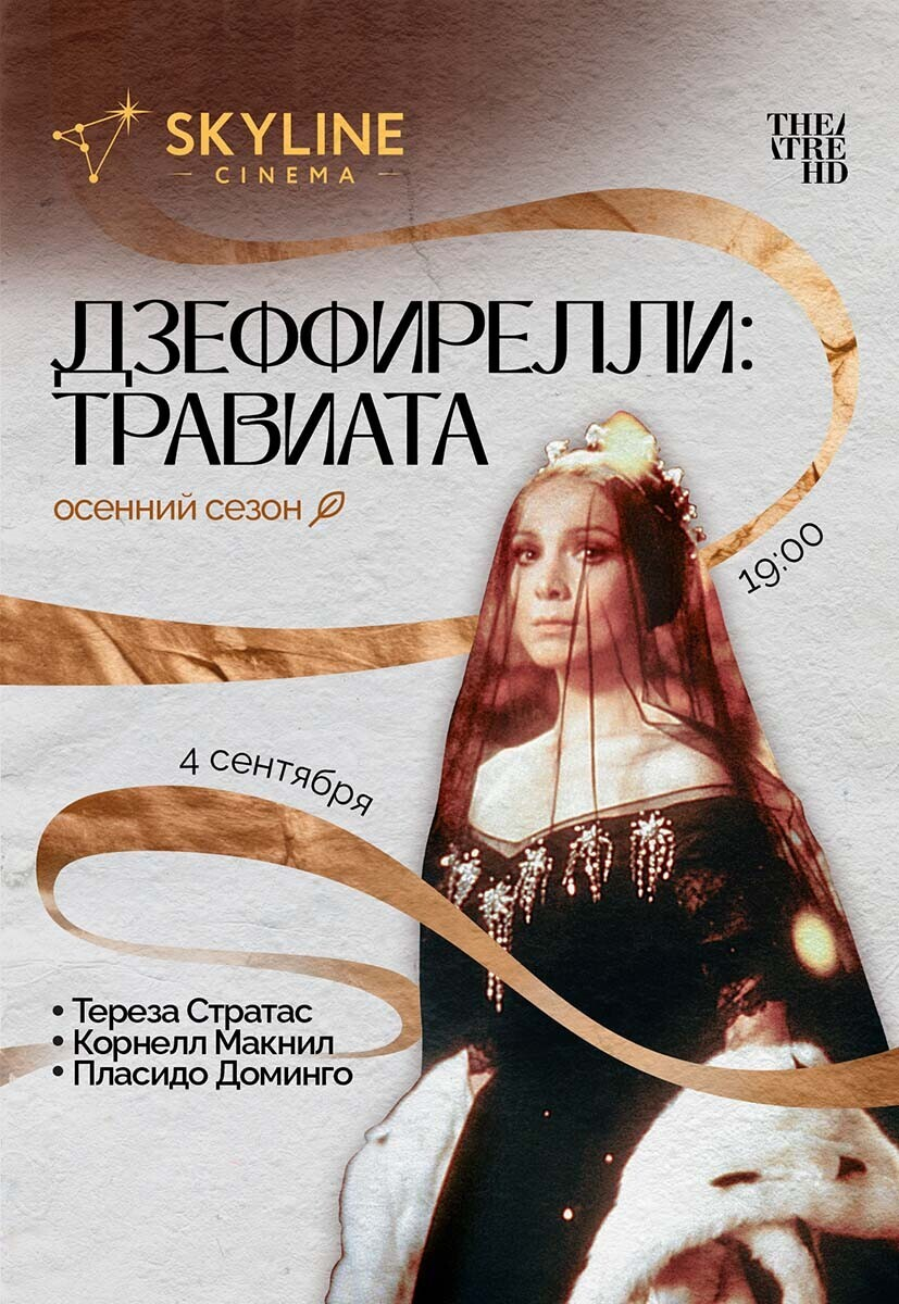 Опера «Травиата» в постановке Франко Дзеффирелли прозвучит в Skyline Cinema в рамках фестиваля «Линии Искусства». В главных партиях — Пласидо Доминго и Тереза Стратас, чья игра и голоса наполняют историю любви и жертвенности особой силой. Спектакль на итальянском языке с русскими субтитрами.