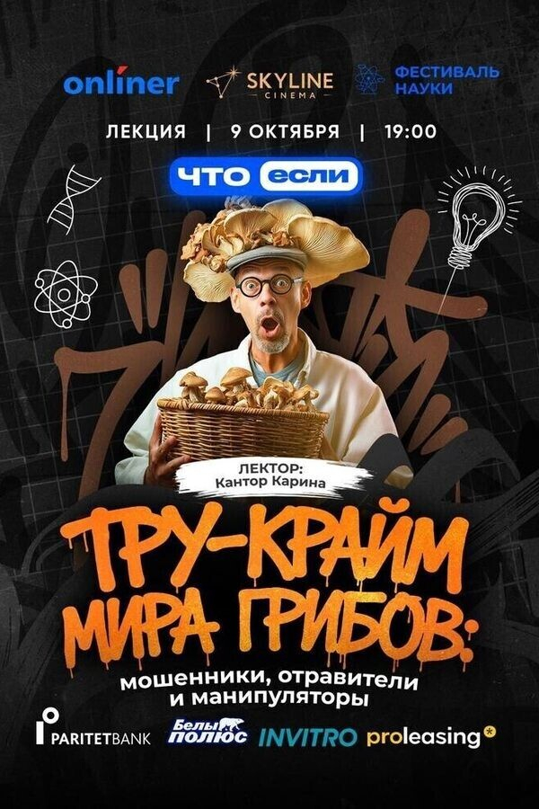 9 октября в Skyline Cinema состоится необычная лекция о «грибном тру-крайме», где гости узнают о хитроумных стратегиях грибов и их влиянии на жизнь людей. Участников ждут научные факты, увлекательный квиз с призами от партнёров и подарки за самые интересные вопросы. Это событие объединяет науку, юмор и атмосферу живого общения, делая вечер не только познавательным, но и по-настоящему ярким.