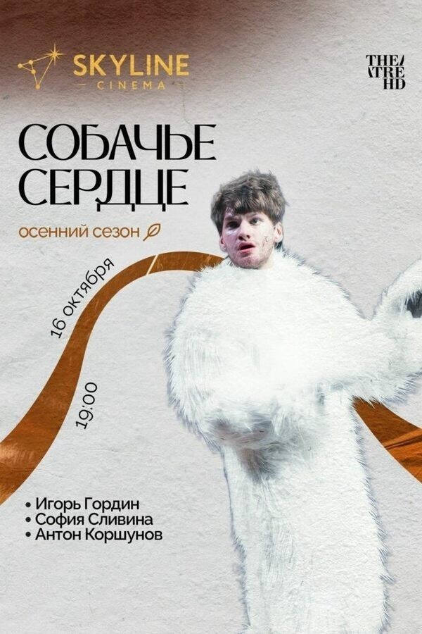 16 октября в Skyline Cinema покажут спектакль «Собачье сердце» в постановке Антона Фёдорова. Классическая история Булгакова оживает в современном прочтении, соединяя традиции и новые художественные акценты. Показ проходит в рамках фестиваля «Линии Искусства» — проекта, объединяющего лучшие театральные постановки мира.
