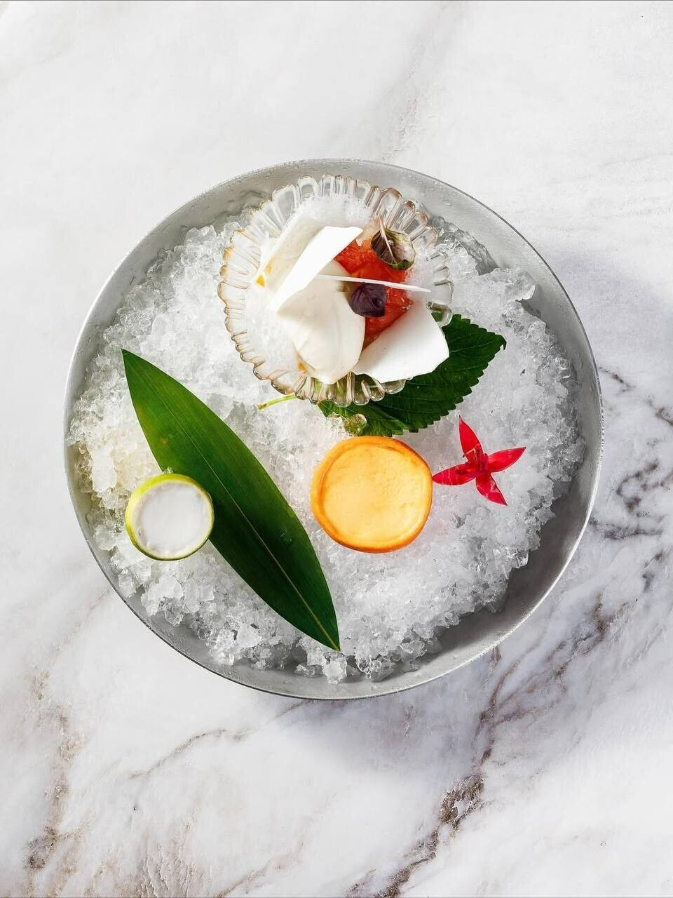 сорбет лайм, сорбет маракуйя, мусс юдзу, цитрус, манго