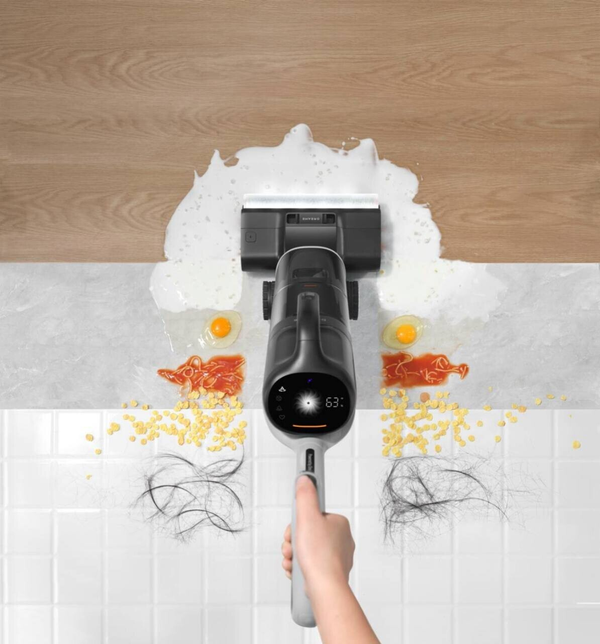 Либо вот вам еще одна опция – моющий пылесос H14 Dual. Помимо выполнения уборки – как сухой, так и влажной, у гаджета есть еще одна важная функция. Особенно ее оценят молодые мамы: девайс на раз-два втягивает в себя разбросанную еду – каши, спагетти, соусы и т.д., не оставляя разводов. При этом в процессе работы насадка для мытья регулярно очищается: с нее автоматически убираются все загрязнения.