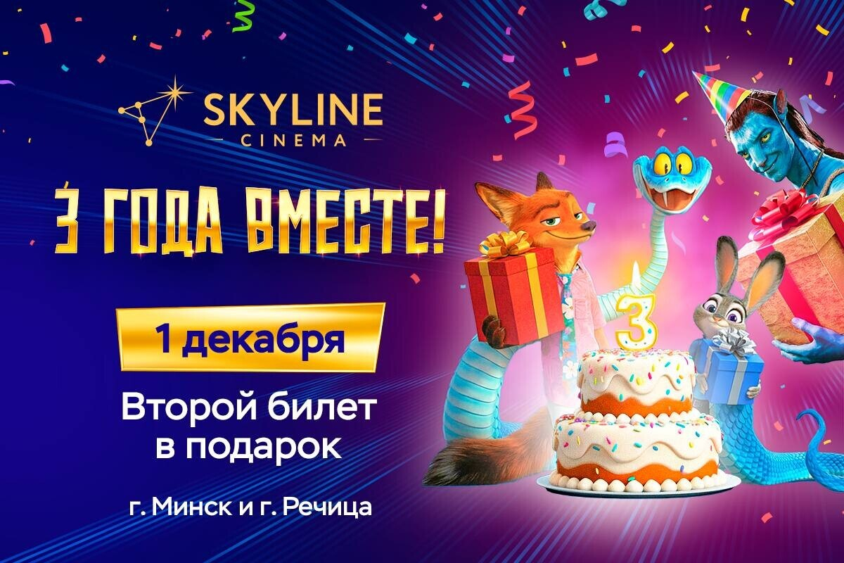 1 декабря сеть кинотеатров SKYLINE Cinema отмечает свой третий день рождения. В честь этого праздника SKYLINE Cinema подготовили для зрителей специальную акцию и насыщенную программу развлечений, чтобы поблагодарить своих гостей за три года, проведенных вместе.
