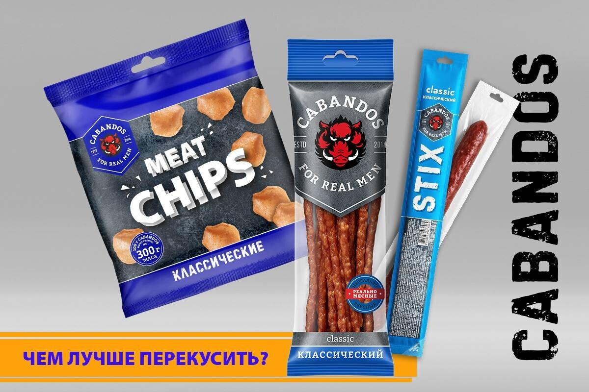 А что выберешь на перекус ты? Колбаски, чипсы или стики? У Сabandos есть все для тех, кому нуженсытный мясной перекус!