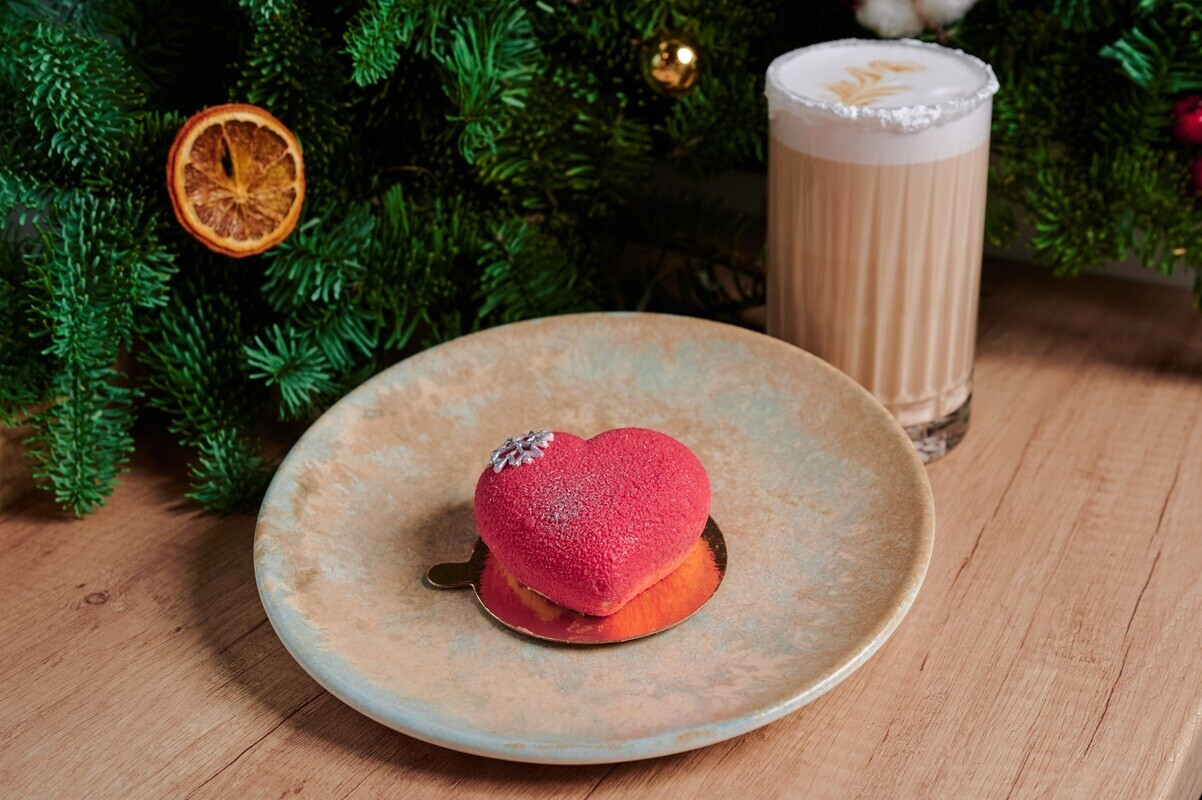 Этот сет создан как маленькое зимнее чудо - нежный, сияющий и по-настоящему праздничный. Муссовый десерт «Вельвет Малина» в форме сердца будто хранит в себе теплую магию декабря, а авторский латте с ежевичным сиропом и ягодным пюре добавляет мягкие лесные ноты. Напиток и десерт с уникальным декором созданы специально для фестиваля и доступны только во время его проведения.