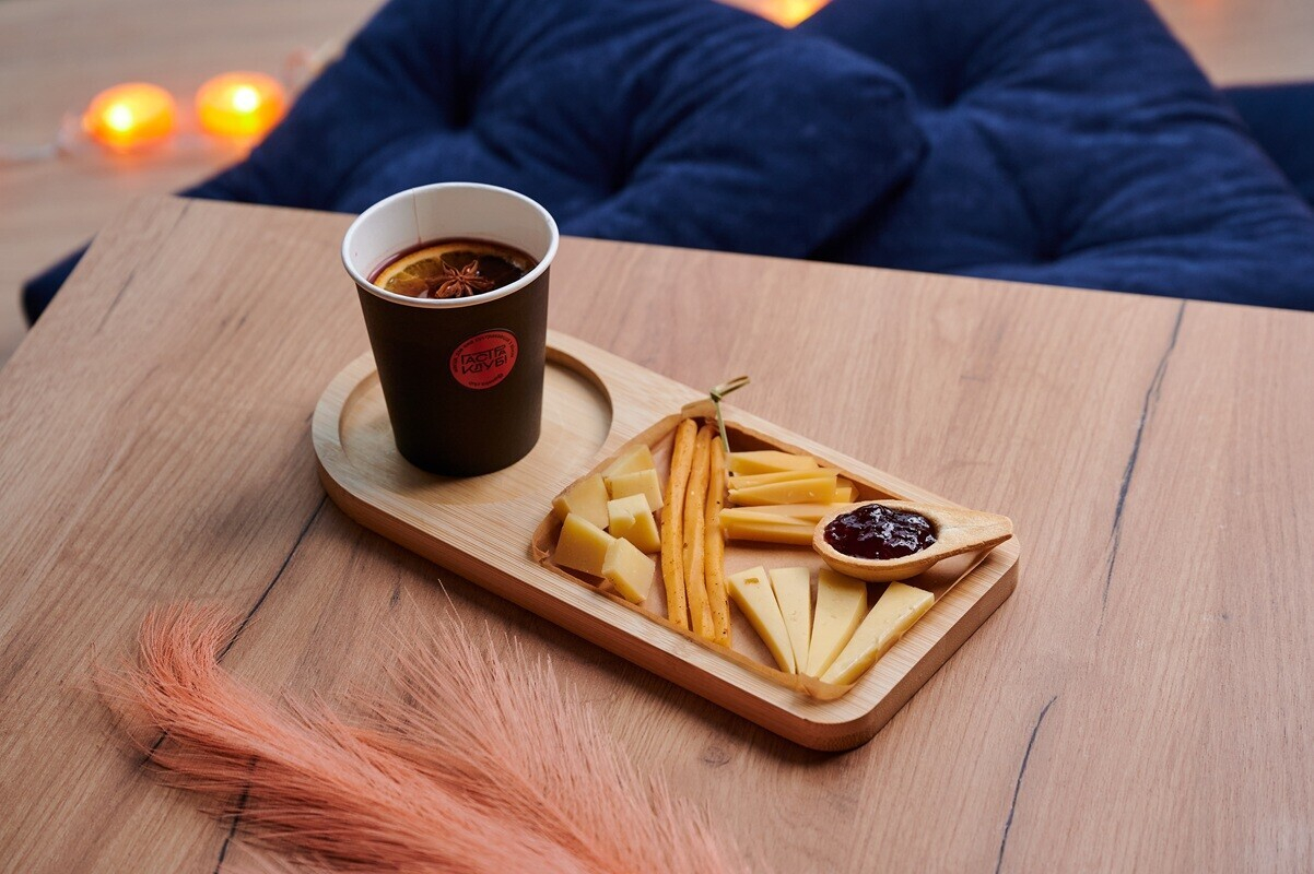 Изысканное сочетание авторского горячего напитка со специями и цитрусами и подборки белорусских сыров: выдержанный Реджанито, карамельная Гауда, трюфельный Гранд Маэстро и копченая соломка. Каждый сыр по-своему «играет» с ярким вкусом глинтвейна, создавая неповторимую гастрономическую гармонию зимы и лета.