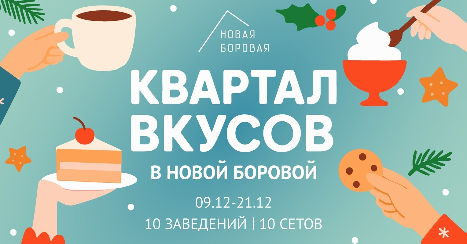 В декабре в Новой Боровой запускается совершенно новый квартал со своей концепцией, настроением и атмосферой. Важно, что он не похож ни на один из существующих районов, уже продуманных и построенных застройщиком А-100 Девелопмент. В рамках гастрономического события «Квартал вкусов» с 9 по 21 декабря в кофейнях Новой Боровой можно будет попробовать уникальные сеты напитков и десертов в десяти разных кофейнях по специальной цене 13 рублей.