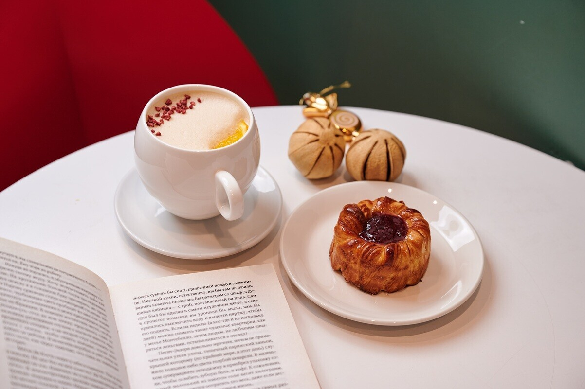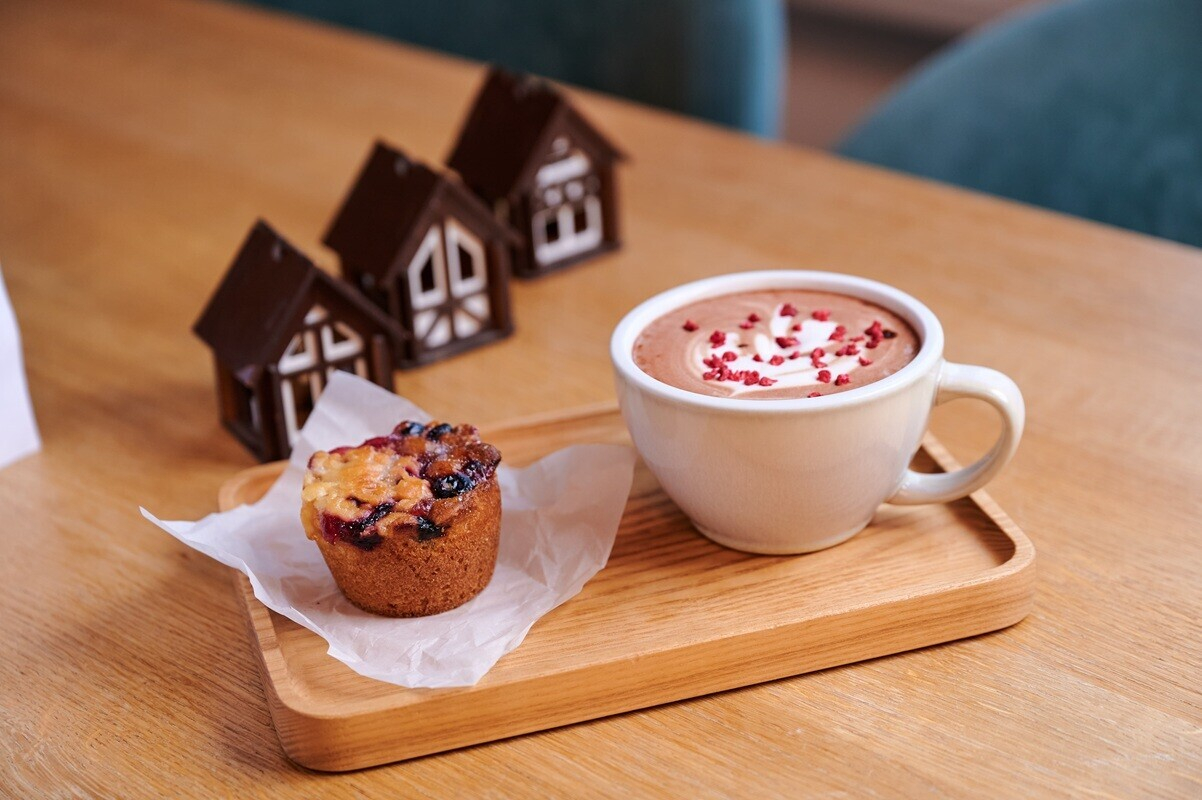 Вкусы, вдохновленные Новой Боровой. Авторский «Боровой раф» с лесными нотами, цитрусом и сублимированной малиной, доступный только на “Квартале вкусов”, и хрустящая слойка «Вишневый чизкейк» с нежной начинкой. Вкус декабря, который можно унести с собой.