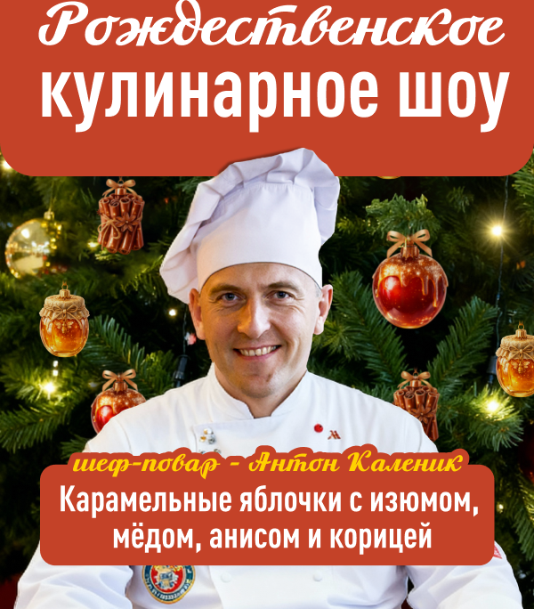 Рождественское кулинарное шоу подарит атмосферу уюта, вкуса и праздника. Гостей ждёт живое приготовление ароматного десерта, музыка и разговоры о новогодних традициях. Это тёплое гастрономическое событие вдохновит на праздничное настроение и новые идеи для стола.