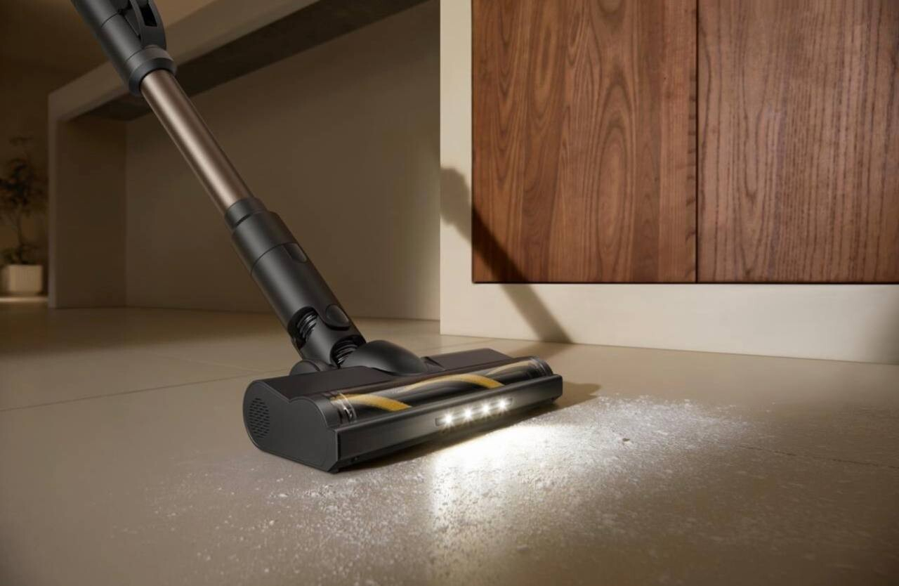 Устройство обеспечивает силу всасывания до 20 000 Па и оснащено универсальной щеткой для разных типов покрытий — от твердых полов до ковров. Встроенная LED-подсветка помогает выявлять пыль и загрязнения в затемненных зонах и под мебелью, повышая точность уборки.
