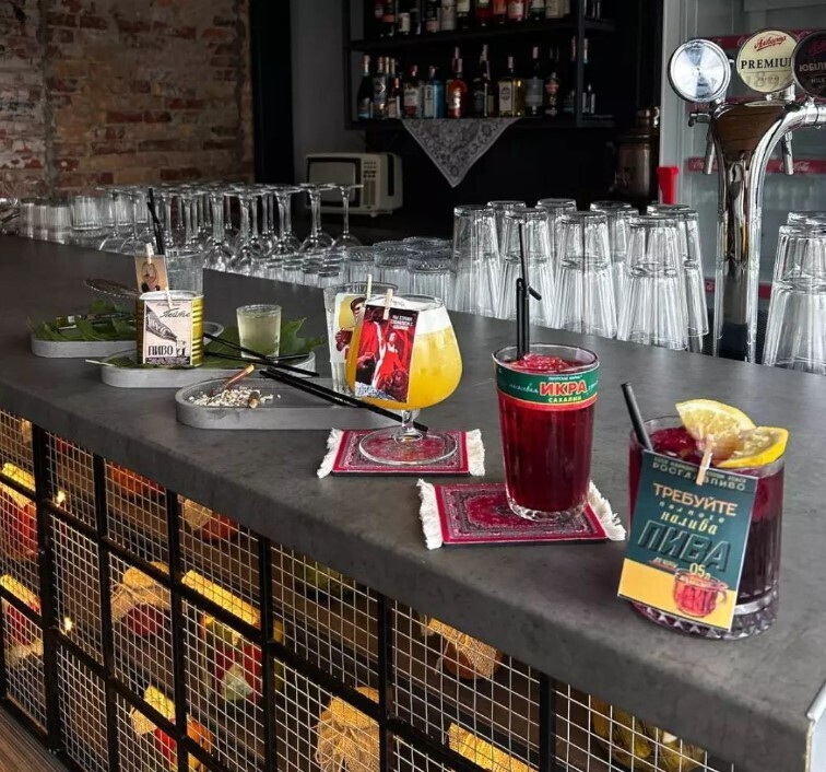 В заведении получился очень вайбовый интерьер, в котором много деталей из недавнего прошлого: ковер на стене, советская посуда, хрустальная люстра, тематические плакаты, советские серванты, матрешки, старые деньги... Не забудьте в уборной нажать кнопку на стене (спойлер: начнется дискотека). На улице есть небольшая детская площадка.