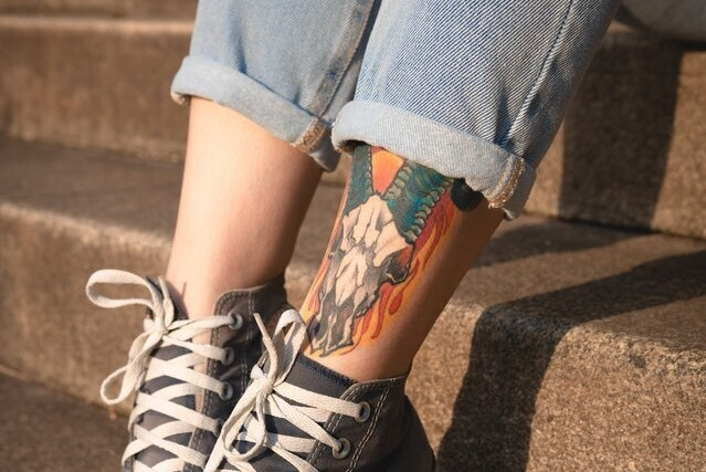 - Татуировки на ногах смотрятся довольно эстетично, и их тоже можно скрыть при необходимости. Также потребуется постоянно брить ноги, чтобы сам рисунок оставался видимым, но данная потребность больше является проблемой для мужчин.