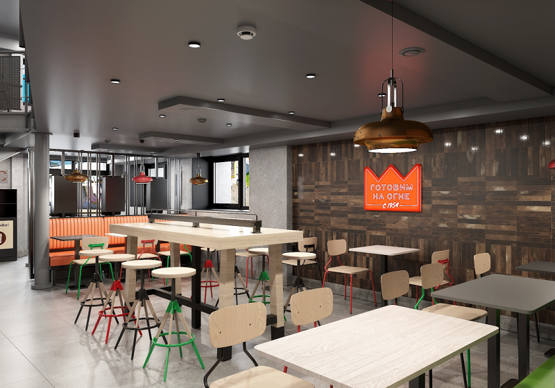 Ресторан на площади Свободы будет значительно выделяться из всей сети BURGER KING в Беларуси, но при этом выполнен он подчеркнуто просто. Деревянные планки, элементы из металла и измененный логотип — такая стилистика познакомит гостей с американским образом жизни в годы основания бренда. Натуральность материалов в новом интерьере подчеркивает и новую продуктовую стратегию BURGER KING: стремление к использованию в блюдах только натуральных ингредиентов. Бренд активно развивает чистое меню — во флагманском Воппере уже полностью отсутствуют искусственные консерванты и красители. Ну а мясо для бургеров традиционно готовится на огне, в специально разработанных грилях.