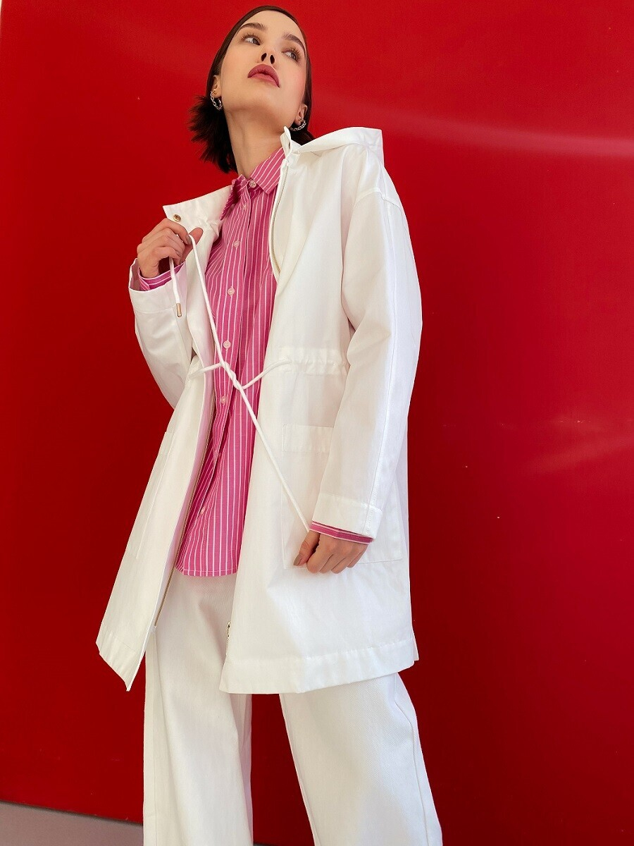 Разнообразие моделей вас приятно удивит: от утепленных курток и пальто до легких плащей и ветровок, от спортивных костюмов до летящих платьев. И какой образ вы бы не выбрали, вся одежда высокого качества, актуального кроя и в самых разнообразной цветовой гамме -- от нежных и пастельных до сочных и неоновых оттенков.