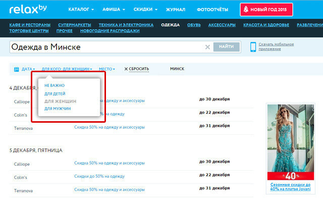 Замечательная новость для шопоголиков: теперь гардероб можно обновлять чаще и значительно дешевле. В этом помогут скидочные рубрики: «Одежда», «Обувь» и «Аксессуары». Обратите внимание, что все акции можно фильтровать как минимум по половому признаку. |