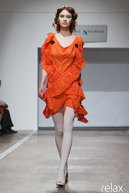 Самый натуральный бренд Беларуси снова вернулся на подиумы Недели Моды со своей новой коллекцией «За веру и верность!» Коллекцию можно разделить на две части – осень-зима и не совсем осень-зима. Но, возможно, в этом есть какой-то философский смысл, что какая разница? Ведь после зимы все равно идет весна? И приобретенное яркое и легкое платье в холодную пору будет так греть душу, мечтая о солнечных деньках. Объемные пальто – определенно выглядят модно и не очень привычно для Historia Naturalis, что является хорошим фактором того, что белорусские дизайнеры не боятся удивлять. Плюшевые платья с рюшами напоминали об образах маленькой волшебницы и осеннем празднике Хэллоуин. Далее модели раздевались все больше и больше. К концу мы увидели открытый пляжный сезон с просторными льняными сарафанами и босоножками на босую ногу. Кстати, форма фирменного сарафана от Historia Naturalis не изменилась, но она усовершенствовалась в плане дизайна, и изделие стало выглядеть более законченным и нарядным. Самым ярким и запоминающимся цветом стал оранжево-алый, казалось, что он, действительно, горит. Поклонницы бренда все также верят в Historia и хранят верность Naturalis.