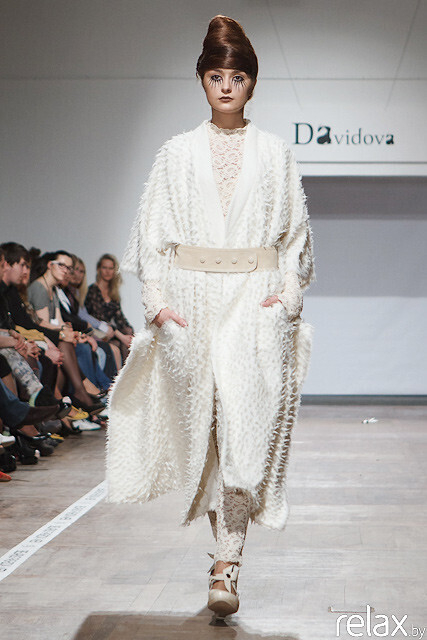 Многие уже давно знакомы с творчеством Марины из-за ее неповторимого принта и самого умелого сочетания земляных оттенков. Но сохранять свой стиль, и делать что-то новое – это особенно ценно для дизайнера. Марине Давыдовой это удалось. Она с легкостью смогла удивить людей необычными образами моделей, новым видением осенней одежды с этническим штрихом, но остаться собой: все также создавая авторские принты. Действительно приятно, что при этом принты не выглядят так навязчиво и не являются эпицентром события, как было всегда. Коллекция Davidova выглядит самой продуманной из творчества Марины, а также самой перспективной. Давыдова внесла в белорусское понятие верхней одежды такую вещь, как накидка. За что мы ей говорим «Спасибо!». Самым большим вызовом в коллекции можно считать сочетание кожаной бахромы и тонких прозрачных тканей, которое выглядит необычно и даже театрально. Коллекция наполнена осенью, грустью, но при этом и теплотой.