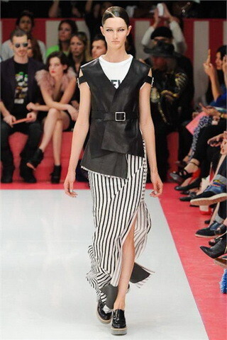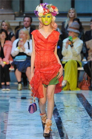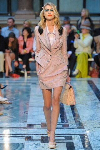Можно со смелостью сказать, что если бы мы были в школе, то Вивьен Вествуд была бы круглой отличницей, несмотря на ее поведение. Она никогда не скачивает рефераты из Интернета, и тем более не списывает у других. Vivienne Westwood Red Label – это вторая линия дизайнера, которая является более дешевой, носибельной и повседневной. Однако, что в понятии Вивьен просто, вызывающе – у консерваторов. Коллекция весна-лето 2013 – это интересные аксессуары (необычные сумки, ободки и очки), поздние сороковые, викторианские формы на девушке-инопланетянке. В этот образ и не нужно было входить модели Шарлотте Фри, которая открывала показ, потому что она такой и является.