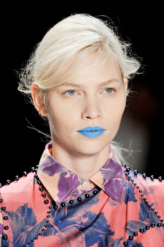 Макияж этим летом должен быть простым и естественным, но главным акцентом должны стать губы. Их стоит выделять, но не только привычными красными или розовыми цветами, а, например лиловым, инопланетно-зеленым (хороший вариант для вечеринки), или двумя цветами сразу, как на показе Prabal Gurung.