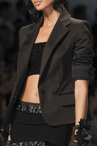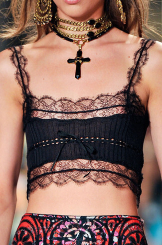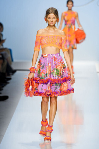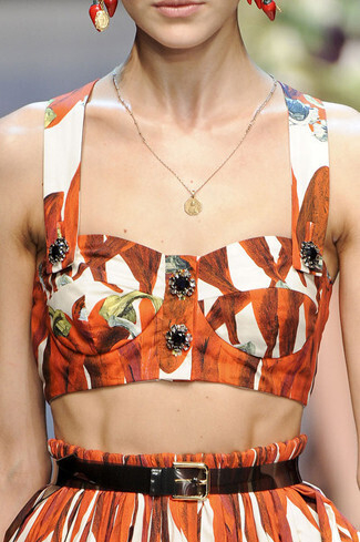 Абсолютным «маст-хевом» для этого сезона является короткий топ или бюстье. Но только не такие, которые были в 90-ые с изображением главных героев фильма «Титаник» или с надписью «Adidas», а более женственные и сделанные из более благородных тканей. Носить такие топы лучше всего с завышенной талией. Отлично смотрятся такие бюстье с юбками-солнце, создавая модный испанский стиль, а также и с юбкой-карандаш. Также не скупитесь на цвета и принты.