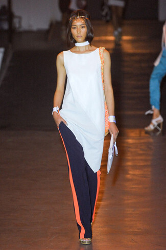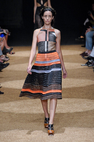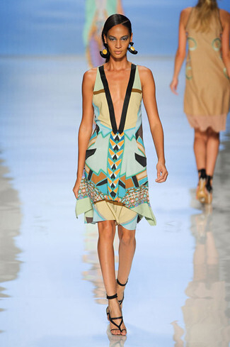 Геометрические линии и фигуры должны составляться в один полный рисунок придавая образу, как современность, так и фольклор одновременно. Но в мозаику могут сложиться не только рисунки на одежде, но и элементы ее декора. Яркая и четкая отделка карманов, линии молний разных цветов, могут выглядеть не просто хаотично, а даже гармонично. Но не нужно забывать, что, например, жакеты в подобном стиле могут создать образ «трансформера», поэтому романтическим особам это не совсем подойдет. Но, конечно, платье с мозаикой по всему периметру будет найти тяжело, поэтому попробуйте подыскать рубашку с разнообразными линиями и носить ее с летними укороченными брюками или с юбкой с завышенной талией.