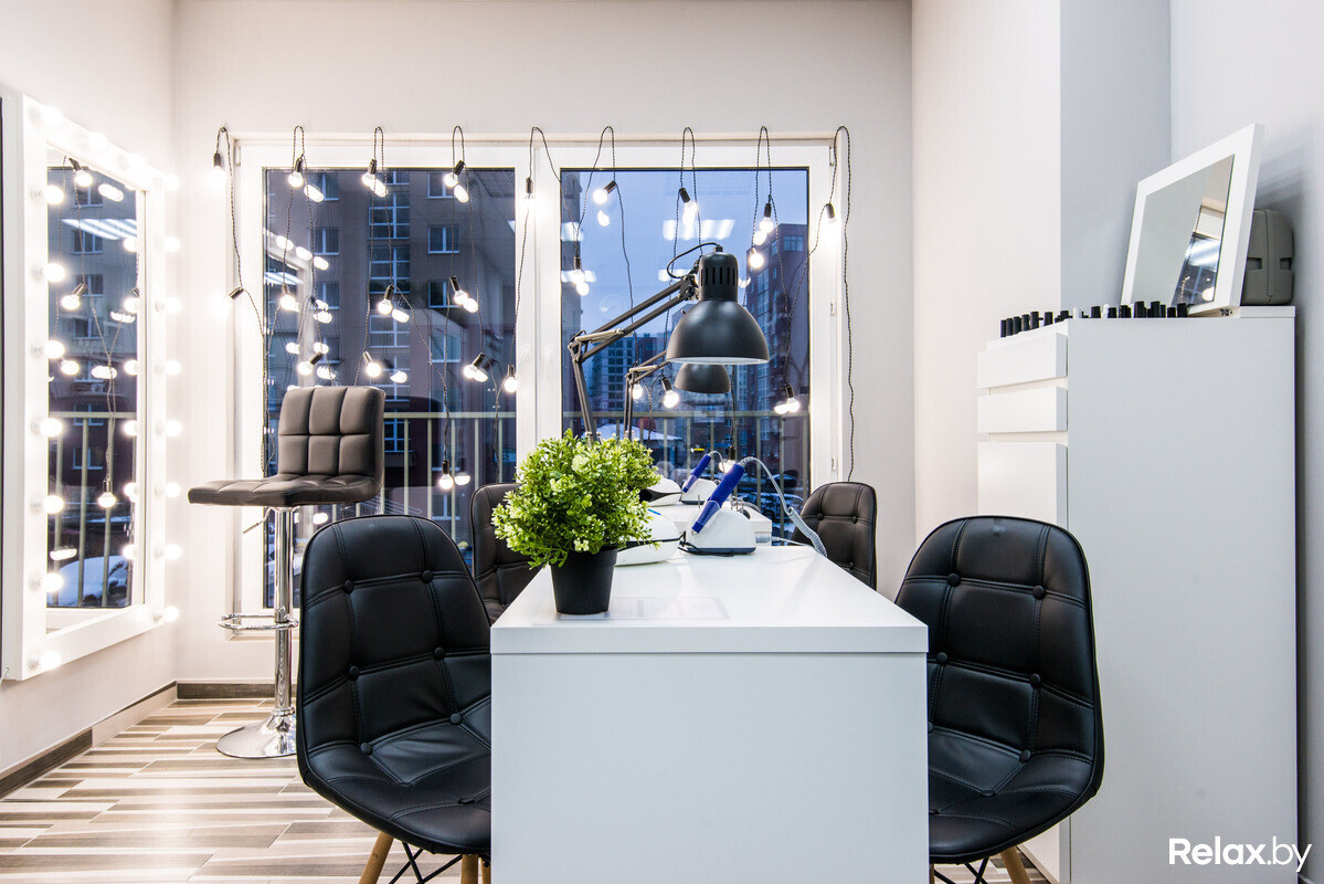 Мастера нейл-сервиса в студии предлагают классический и аппаратный маникюр, в том числе и с долговременным покрытием и индивидуальным дизайном. В салоне также доступны наращивание и биозавивка, а также укрепляющие процедуры для ресниц — ботокс и ламинирование, окрашивание и коррекция формы бровей и микроблейдинг.