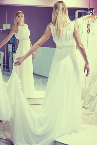4 Фасон: греческий Модельный дом: Elianna Moore Страна-производитель: Франция Прописан для фигуры типа: яблоко, груша, песочные часы Рост невесты: невысокий Комментарий Ольги: Чаще всего такие платья шьют из струящихся тканей: шифона, атласа. Основной декор приходится на область лифа: кружево, бисер, стразы, пайетки, плиссе, воланы. Драпировка скрывает объем в бедрах и слегка обозначает талию. В целом платье выглядит очень нежно и женственно. |