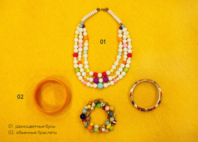 Довести образ до конца помогут красные туфли, яркие бусы и повязка на голову.