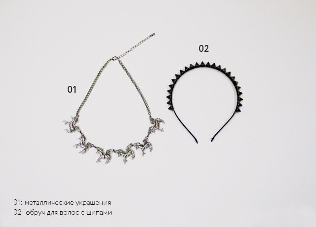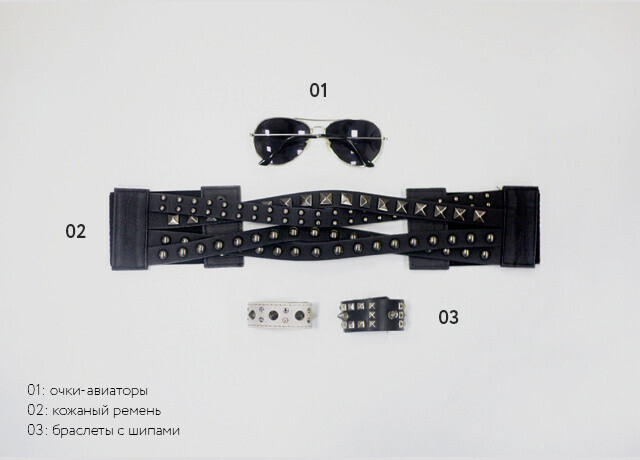 Елена Лосева: «Тут все довольно просто: кожаная куртка или жилет из денима, аксессуары с шипами и заклепками и очки-авиаторы на макушке. Что касается обуви, то я советую выбрать плоский ход и танцевать до утра!».