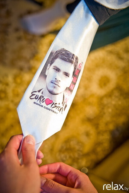 Галстук с Еврофеста. Мне его подарили на отборочном туре Еврофеста поклонники. Они пришли болеть за меня в таких галстуках. Вот один и мне достался на память.
