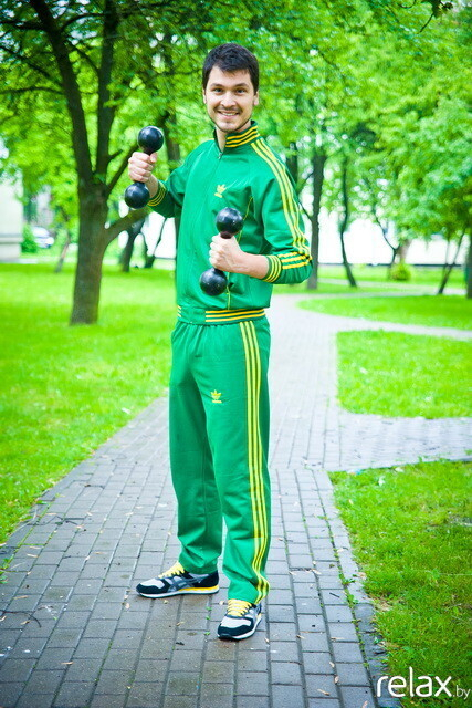 Спортивный костюм Adidas. Отдыхали с Владимиром Кубышкиным в Турции. Просто шли по улице, и я случайно увидел в магазине этот костюм. Сразу вспомнил старый американский клип, в котором темнокожий рэпер был в таком же костюме. И понял, что хочу его. Потом к нему прикупил кроссовки. Скоро пойду в тренажерный зал, а пока бегаю по вечерам. И выбивание ковров, между прочим, тоже отличный спорт.