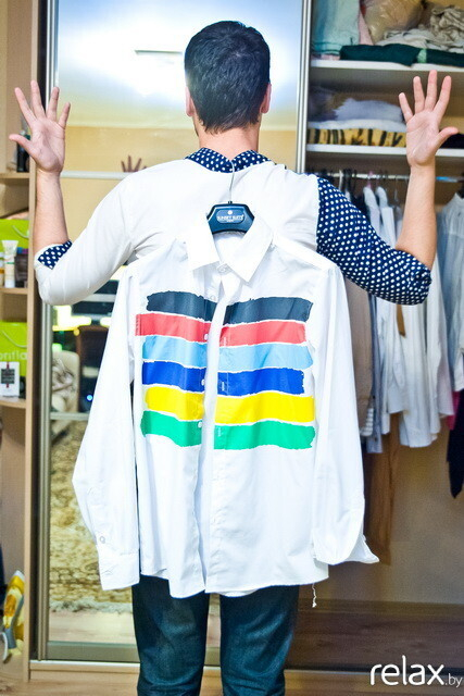 Рубашка H.D. Эту рубашку, как и многие вещи в моем гардеробе, я приобрел в Интернет-магазине. Она, на мой взгляд, сделана в стиле клоуна Попова, у него похожая была. Наверное, это ассоциации из детства, выражение моего внутреннего мира. Если ты не боишься одевать такое, значит, ты веселый. Часто появляюсь в ней в эфирах ОНТ. Многие спрашивают, что это за дизайнер. А я не заморачиваюсь по поводу брендов, просто люблю нестандартные вещи. Когда пару месяцев назад подумал о том, что скоро лето, решил — оно обязательно должно быть ярким, и заказал несколько таких прикольных вещей.