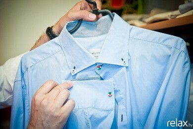 Рубашки Belfe. Классические голубая и белая рубашки с флагом Италии на пуговицах — ненавязчивый и лаконичный акцент. Еще раз говорит о том, что я патриот.