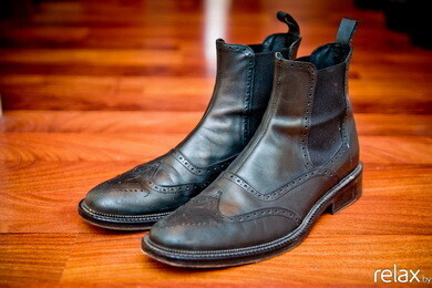 Обувь Versace. Здесь подобную по форме обувь практически не ношу, это не практично. В Италии мы ходим по дому в обуви, нам не нужно постоянно разуваться. У вас другие обычаи, приходится каждый раз, когда приходишь в гости снимать обувь, а потом одевать. Это неудобно, поэтому эти ботинки здесь я практически не ношу.