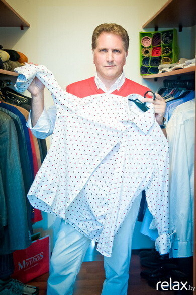 Рубашка Brian Dales. В моем гардеробе очень много рубашек. Это его основа и база. И, конечно же, у меня есть рубашки всех основных цветов: белые, черные, голубые. Эта вещь отличается оригинальностью. По всей рубашке сделана вышивка в красный горошек. Как и практически все мои вещи, она куплена в Италии. Я считаю, что лучше итальянских магазинов нет ничего. Только там можно найти качественные и красивые вещи по приемлемым ценам. Поэтому для меня место для шопинга — это исключительно Италия.