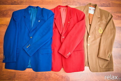 Синий пиджак no name. Коричневый пиджак Gianmarco Venturi. Красный пиджак no name. Это отличный повседневный вариант, когда нужно разделить верх и низ и выглядеть не слишком официально. Такие пиджаки можно носить как с брюками, так и с джинсами. Маленькие брошки на пиджаках в виде короны и буквы R сделаны из золота. Их мне подарила мама. R — значит Ренато.
