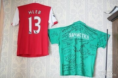 Майка от Александра Глеба. Майка с «Зачистки». Эти две вещи висят на почетном месте. Они особенно для меня значимы, так как это в первую очередь память. Александр Глеб подарил мне свою майку, в которой он играл в Арсенале. Рядом — майка, в которой я участвовал в телепроекте «Зачистка». На ней автографы и пожелания всех участников шоу.